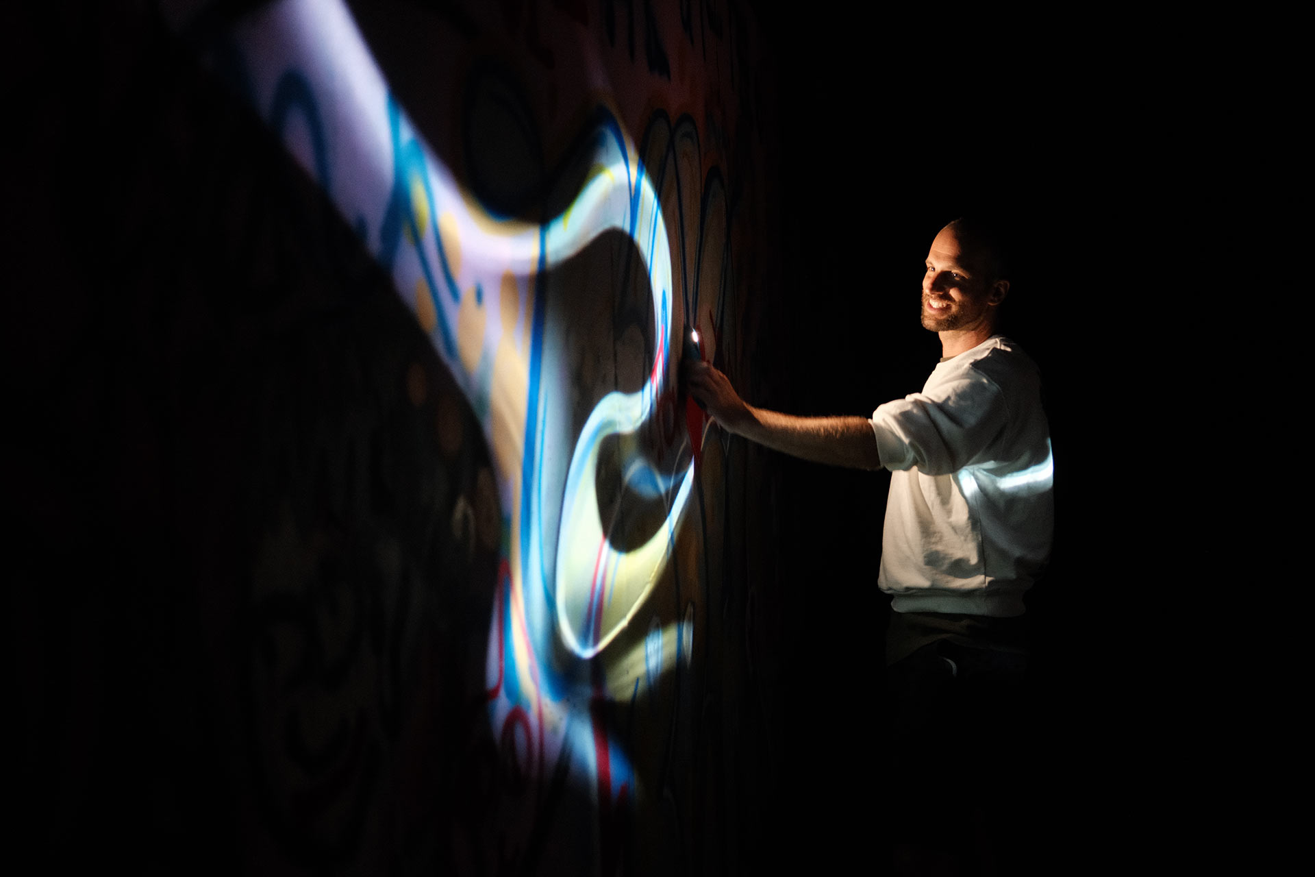 Testing our new experimental tool: digital gestures on a physical wall, tracked and translated in real-time. We are combining the raw energy of graffiti with generative logic to create a dynamic light intervention.