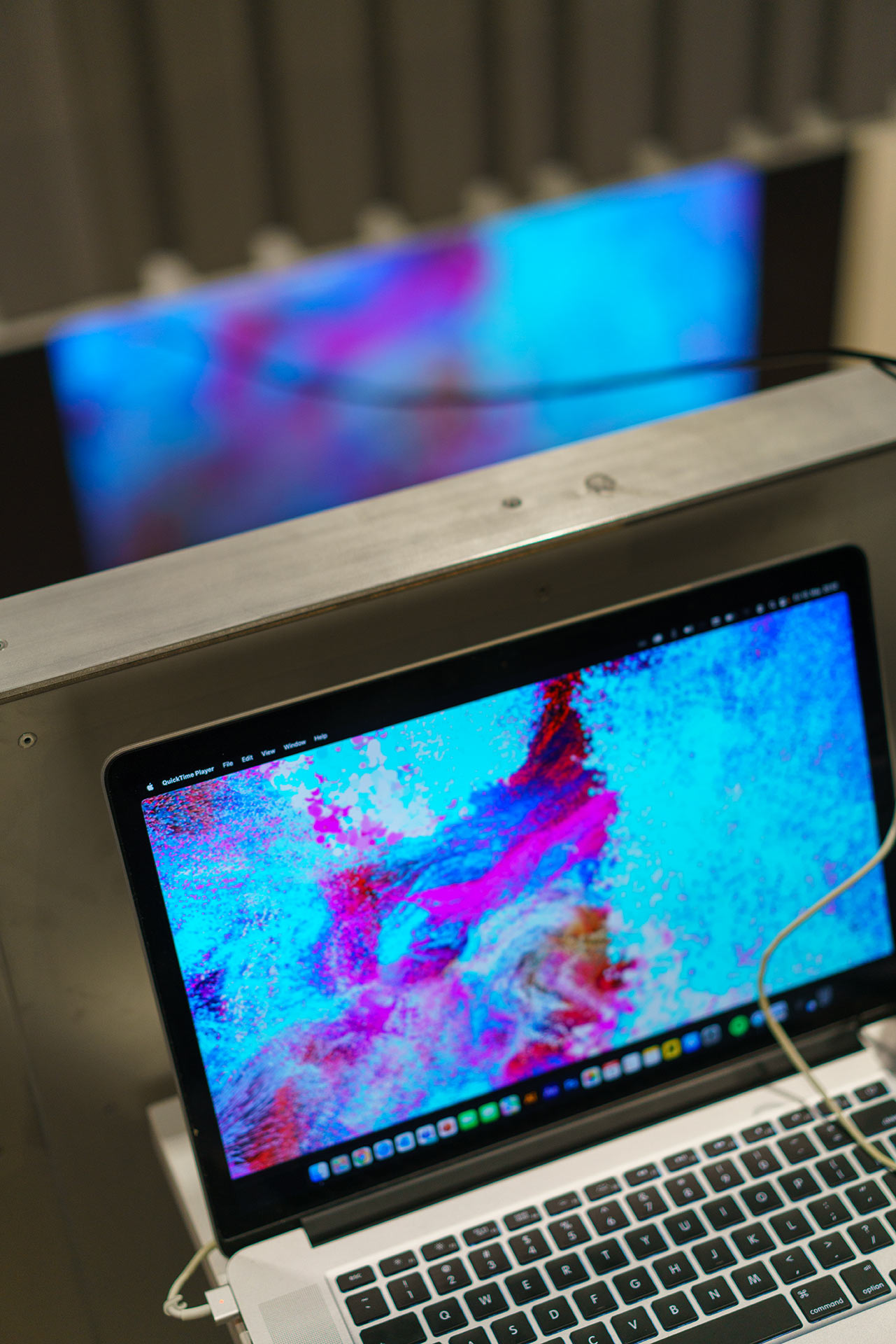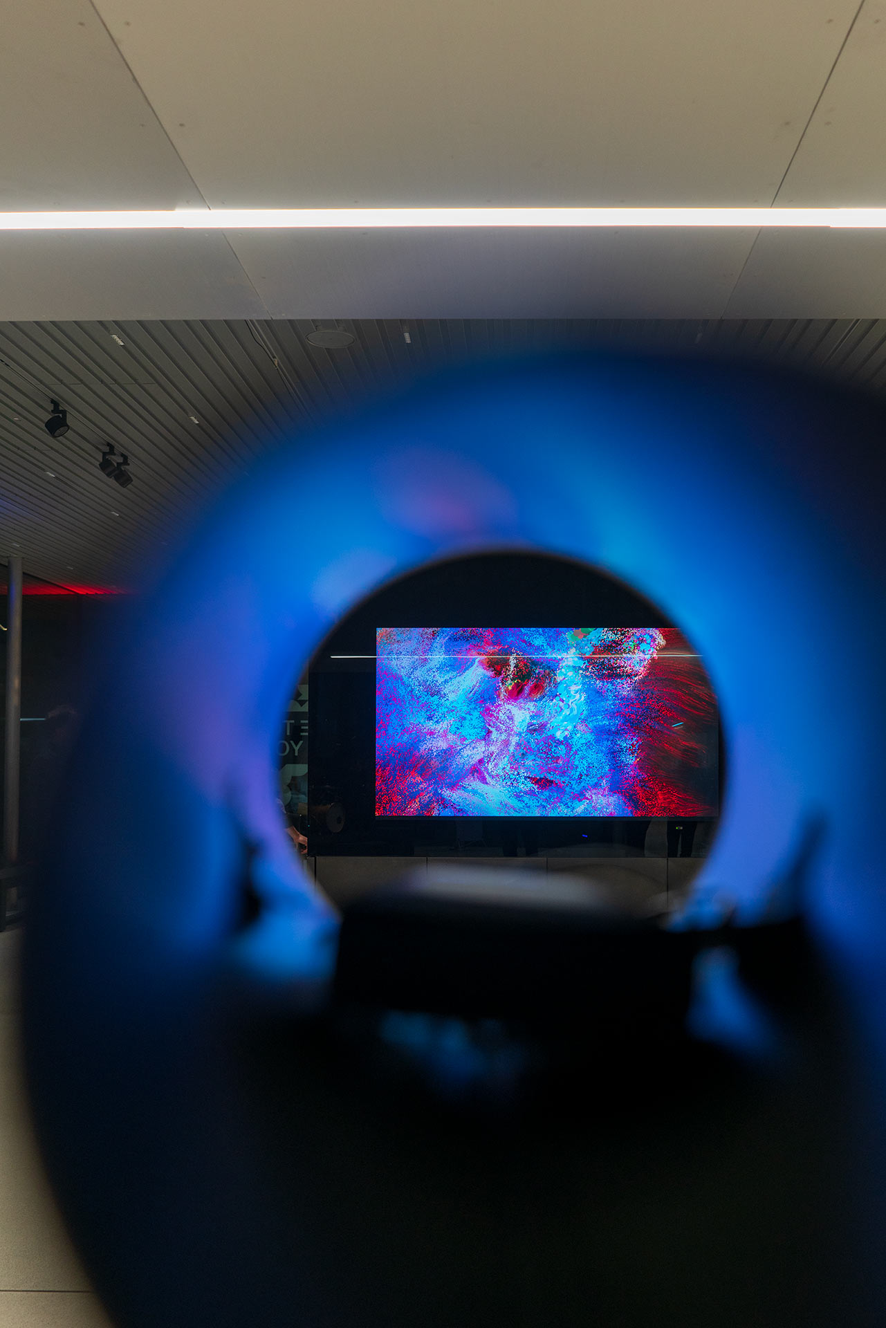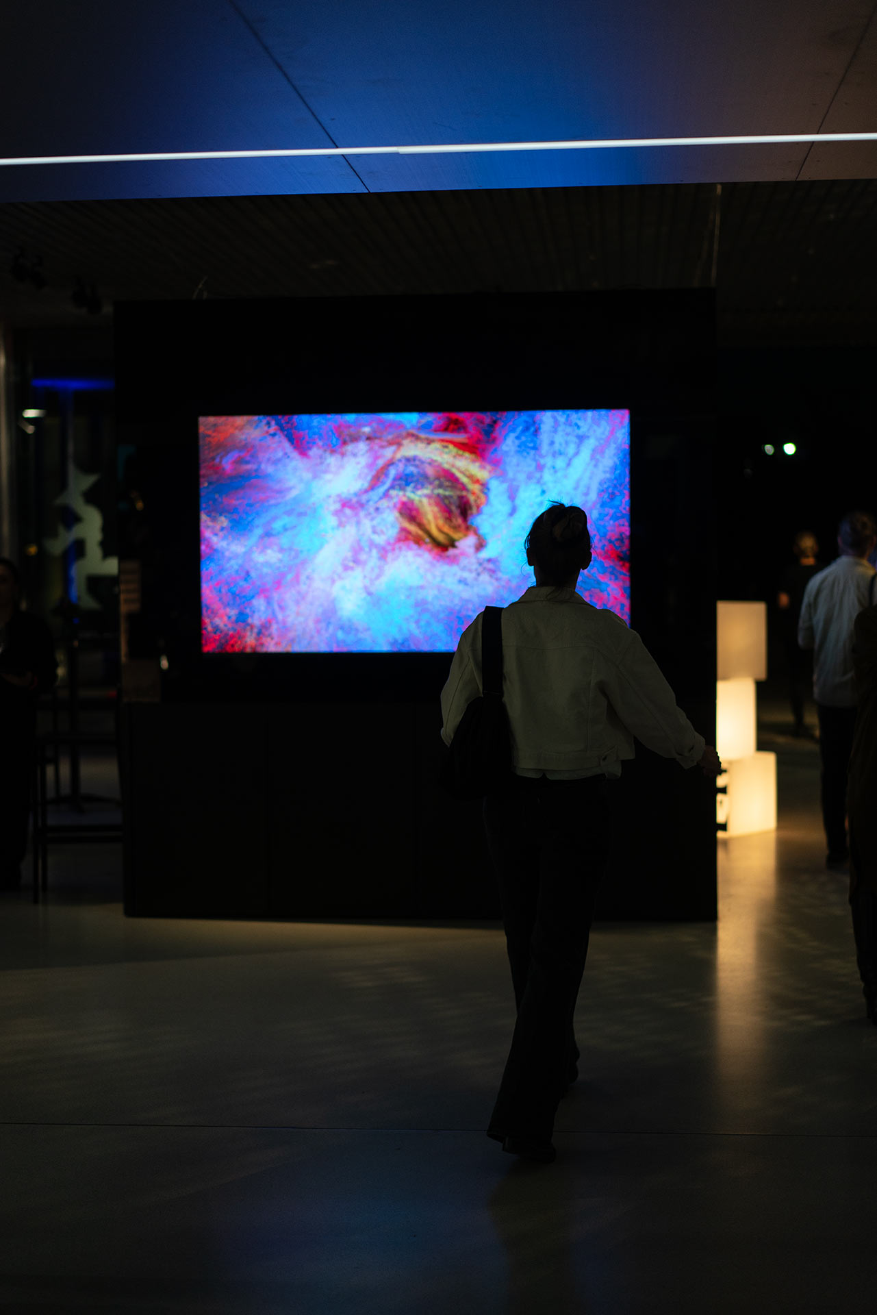 Phase 01 (Opening Party): Focused on low-threshold interaction via screens. Visitors could disrupt the fluid stream by shouting or through the ambient noise of the crowd, testing the limits of direct, social feedback loops.